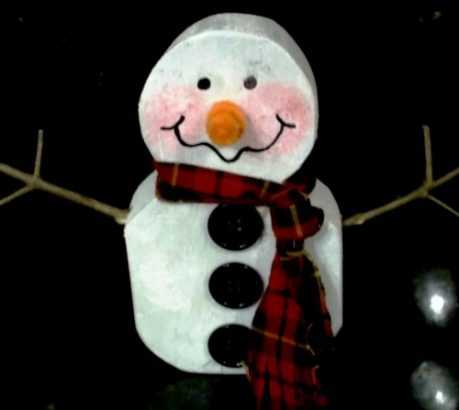 - Ручки делаем из веточек дерева, шляпку из цветного картона серого или коричневого цвета, а шарфик из любого отрезка ткани. Вот и готова наша веселая новогодняя поделка, созданная своими руками быстро и легко. Для школьников можно придумать много подобных изделий, которые они сотворят самостоятельно в домашних условиях. Возможно, это творчество перерастет в настоящее хобби вашего ребенка, а впоследствии и во что — то более серьезное.