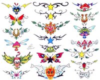 Практически каждый человек в детстве делал себе переводную татуировку из-под жвачки. Сейчас же существует масса вариантов для создания красивых временных татуировок для детей. Причем тату может быть выполнено как в черном цвете, так и в ярких тонах, с блестками, бархатом.