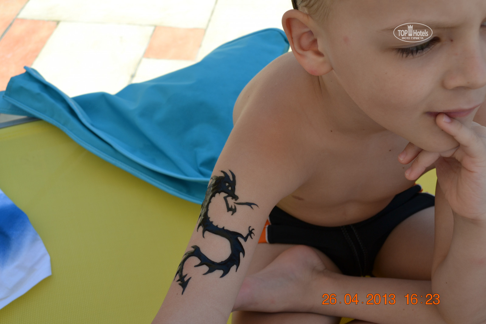Детская татуировка, выполненная хной, держится гораздо дольше, чем обычный рисунок, нанесенный на тело. Такие татуировки очень популярны на летних курортах. С татуировкой, выполненной специальной хной, можно проходить от двух до четырех недель, и затем такой рисунок бесследно исчезает с тела. Обязательное условие для детской тату хной – состав должен быть натуральным, без химических примесей, да и на саму хну надо проверить реакцию детского организма на аллергию.