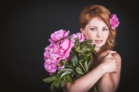 Девушка с пионами. Стоковое фото № 1223128, фотограф Катерина Вахе / Фотобанк Лори