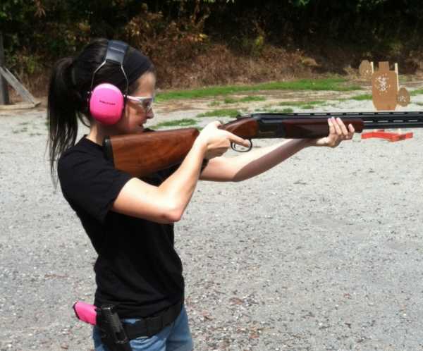 Девушка метится из пистолета.