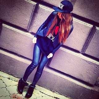 Девушка возле стены в кепке.