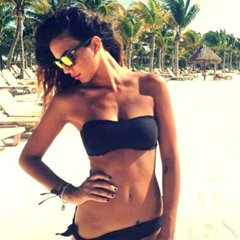 Девушка в черном купальнике.