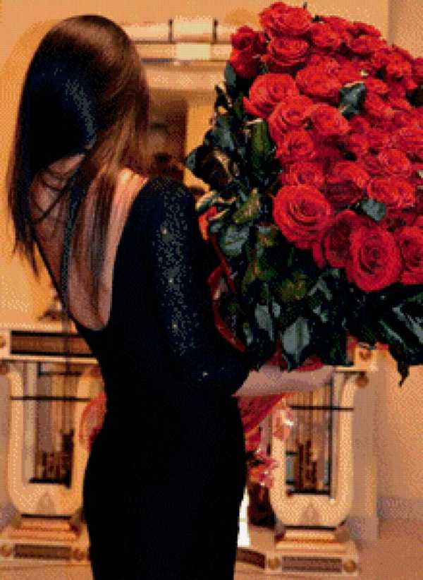 Девушка с розами со спины
