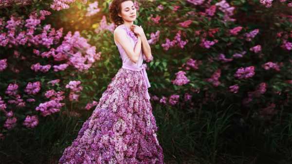 На фоне сирени и в платье из нее