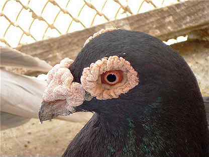 Голуби имеют массивное телосложение и небольшую черепную коробку.На толстом и прямом клюве находятся небольшие наросты. Большие глазные яблоки имеют коричневый цвет и небольшие веки.Наиболее популярные цвета оперения: черный, белый, серый, коричневый и желтый.