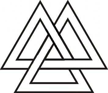 Валькнут – знак Бога Одина. Его считают скандинавским. Но, и русичи верили в этого верховного духа войны. Ему служили Валькирии. Они кружили над полями сражений, подбирали павших и уносили в небесный град. Там сраженных ждали явства, которые тоже подносили Валькирии. Валькнуты из металла, дерева, вышитые на одежде – символы славянской веры в то, что защитники рода обретают в верхнем мире лучшую жизнь.