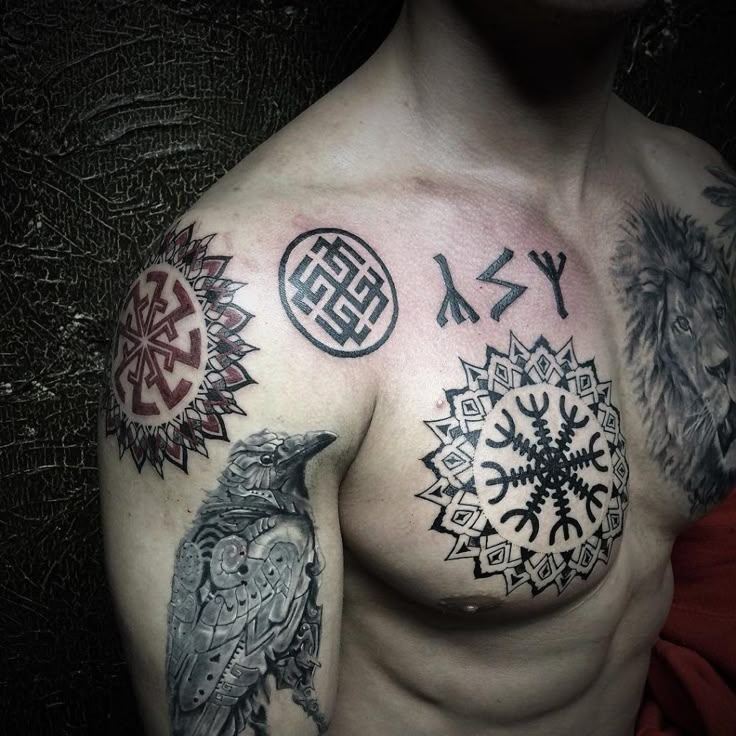 Он символизировал поклонение светлым богам. Были популярны и другие схематические изображения с глубоким философским смыслом: Знич, Богодар, Колард и пр. Женщины часто носили на своем теле изображения рун, которые славяне позаимствовали у скандинавов. Славянские руны «Берегиня», «Мир», «Алатырь», «Радуга», «Крада» несли в себе глубокий смысл и часто присутствовали в узоре женских тату.