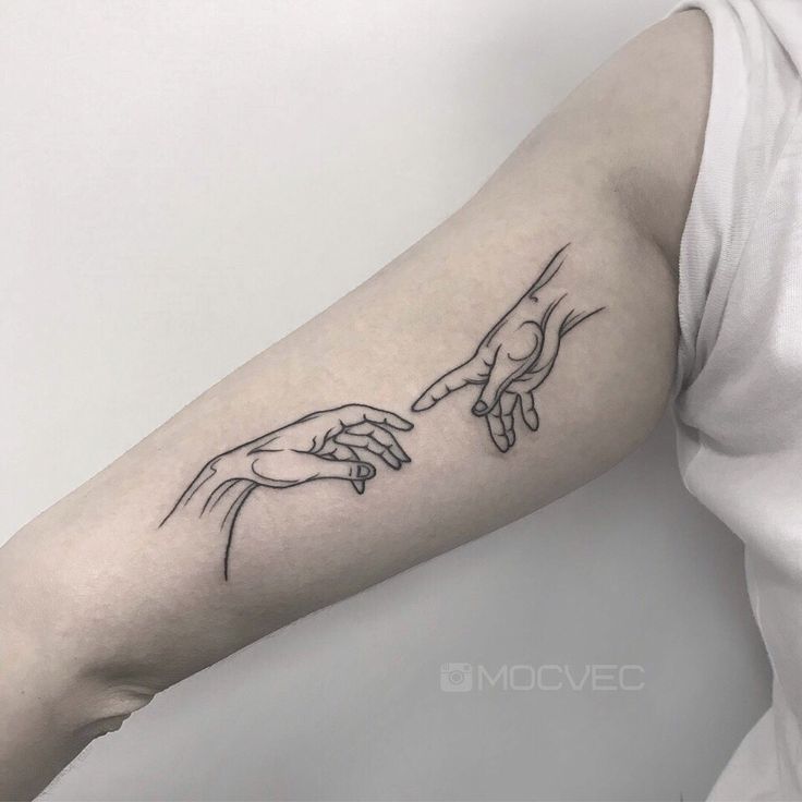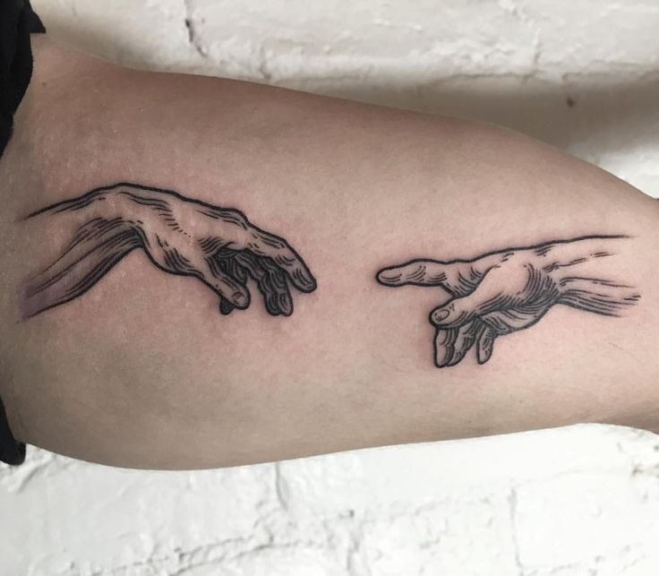Вы можете легко сделать татуировку на запястье “Сотворение Адама”, как у этого владельца, а затем объединить оба запястья, чтобы создать цельную картину.