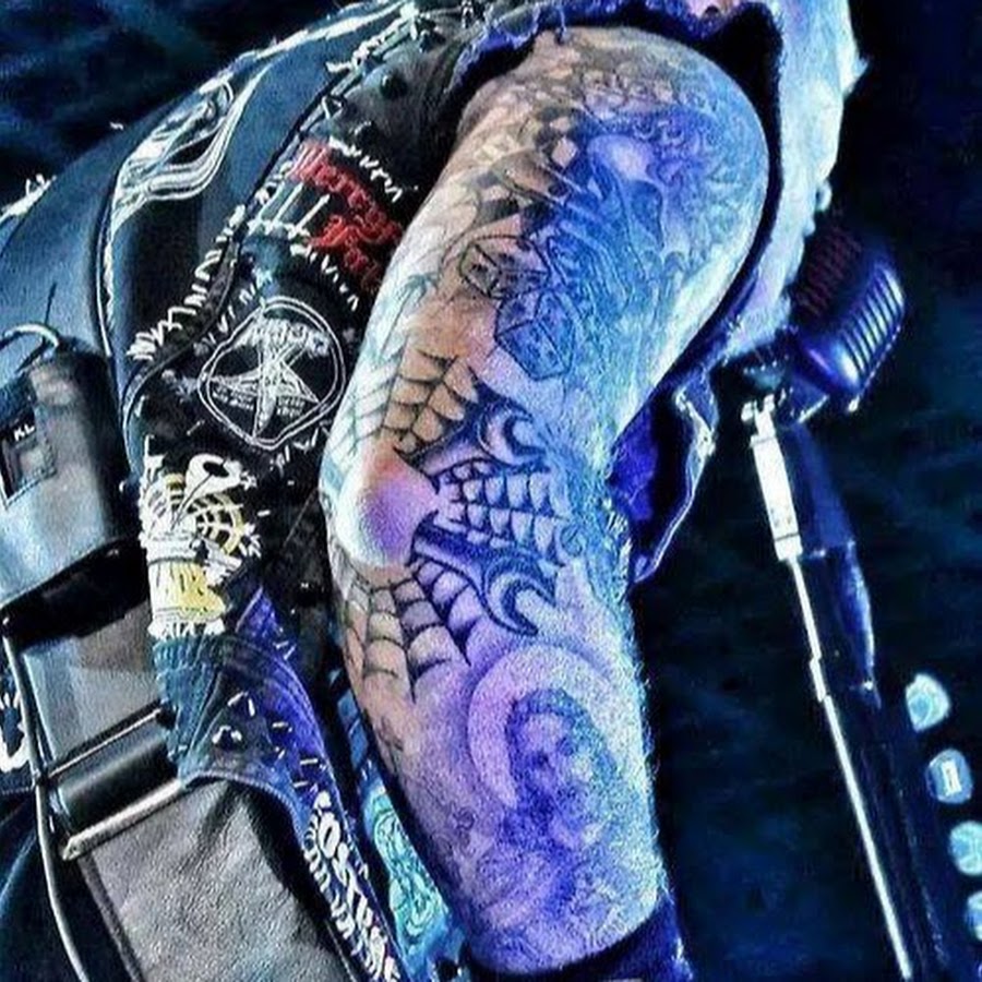 Джеймса Хэтфилда по праву можно считать легендой тяжелого рока. Он является одним из основателей группы «Металлика». Артист не только потрясающий гитарист, исполнитель; его творческая натура распространяется дальше.Любит рисовать, увлекается символикой, а графический дизайн – его свободное время. Все его увлечения отображены на теле в виде многочисленных татуировок.