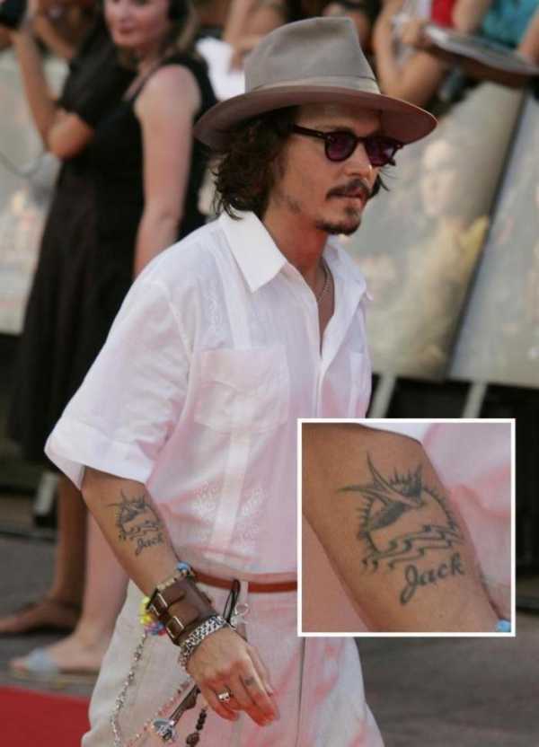 14. Актёр Джонни Депп оставил себе татуировку капитана Джека Воробья из «Пираты Карибского моря» и носит её по сей день.
