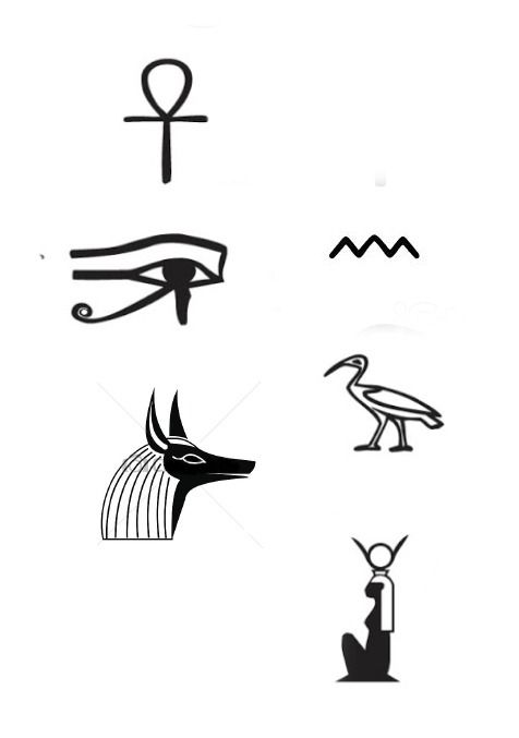 Татуировки с изображением египетских иероглифов также популярны среди поклонников египетской культуры, истории или мифологии. Согласно древней легенде, в допотопные времена Тот, один из верховных богов, передал знания обо всем сущем с помощью иероглифов.