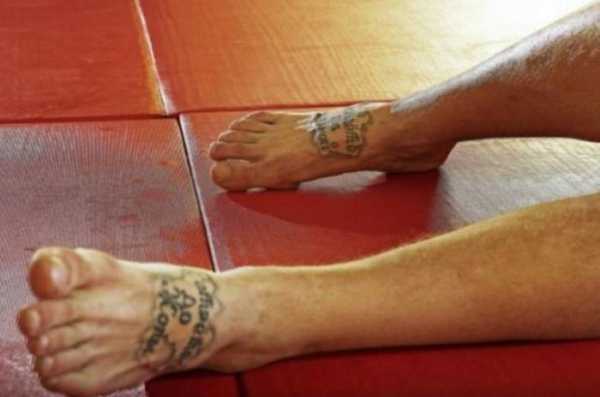 На ступнях можно видеть различные надписи, их тоже связывают с миром воров. Сам парень прокомментировал это тем, что у каждого человека есть своя правда. Боец Александр Емельяненко татуировки не скрывает, но говорить о них не любит.