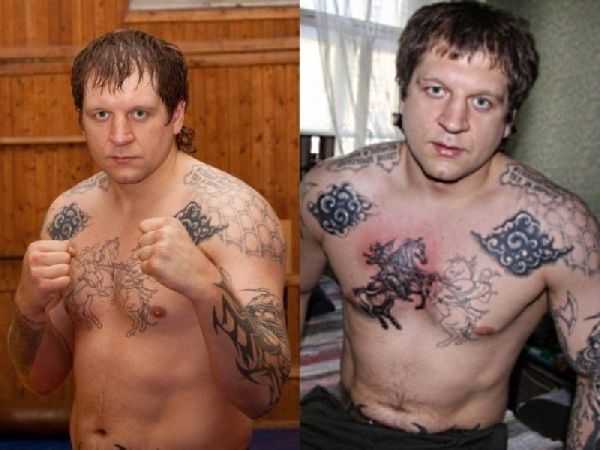 Боец утверждает, что все те достижения, которые есть у него, являются большим трудом. Мужчина говорит, что делать татуировки не так больно, как кажется, но все же иногда возникают неприятные и даже болезненные ощущения. Например, когда делается наколка на коленях и стопах. Но слабой выдержкой никогда не отличался Александр Емельяненко. Фото татуировок демонстрируют его характер и силу воли.