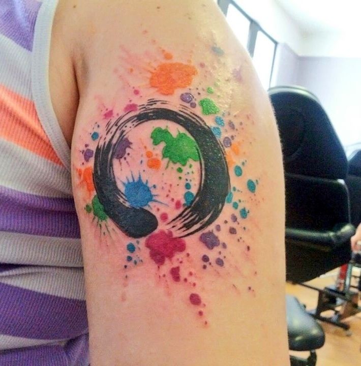 цвет. Вы можете выбрать красочный дизайн фона, чтобы перенести свой древний символ в современный мир, например акварель. Вы также можете выбрать цвет, который важен для вас. 4. Татуировки ENSO на плече