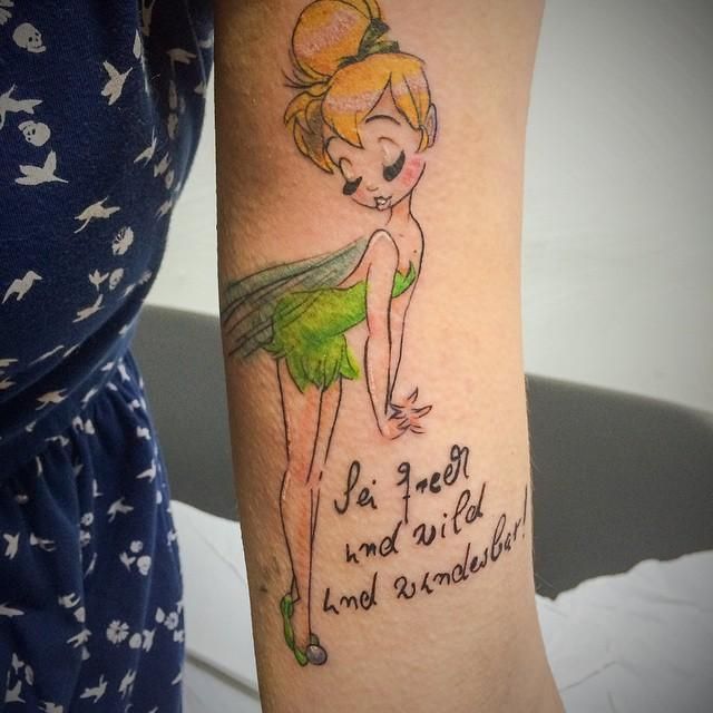 Татуировки Тинкербелл — это классические образы фей. Тинкербелл озорная, но от природы добрая, поэтому этот дизайн символизирует Молодость, Легкомыслие и Невинность. В то время как некоторые версии татуировок Tinkerbell кажутся детскими, другие воплощения находятся под сильным влиянием дизайна девушек в стиле пин-ап, но не являются откровенно чувственными.
