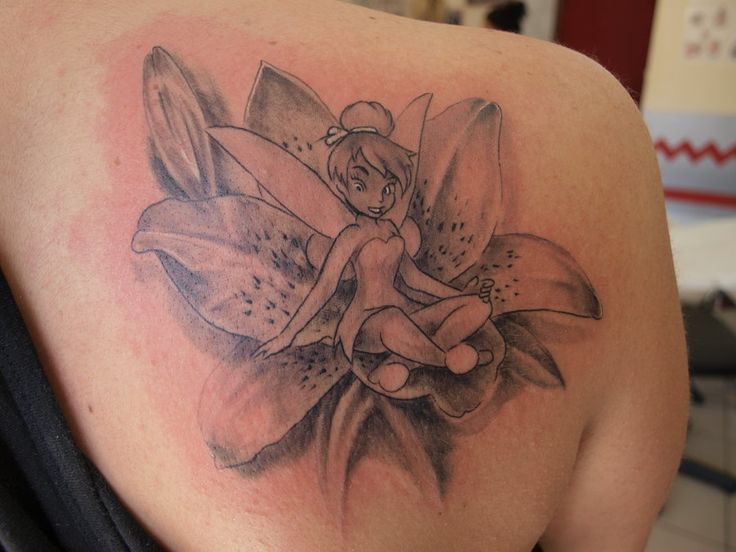 Татуировки фей, которые являются буквальными изображениями популярных персонажей, таких как Тинкербелл или Дюймовочка, являются еще одним отличным выбором.