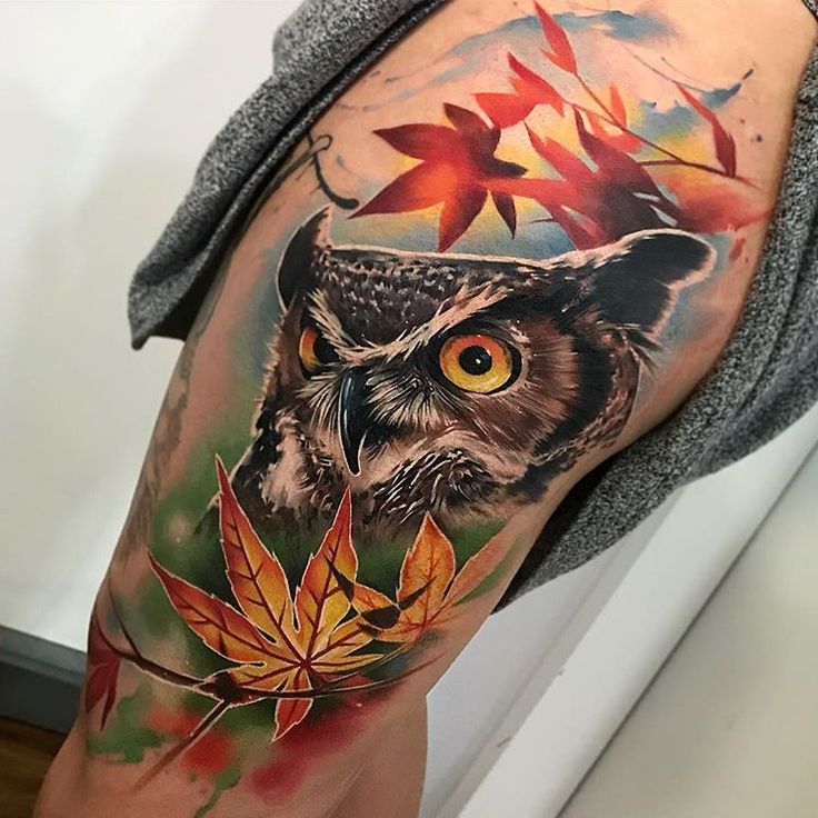 Изображение филина способно украсить любую часть вашего тела, однако наиболее распространёнными вариантами считаются плечи и руки.