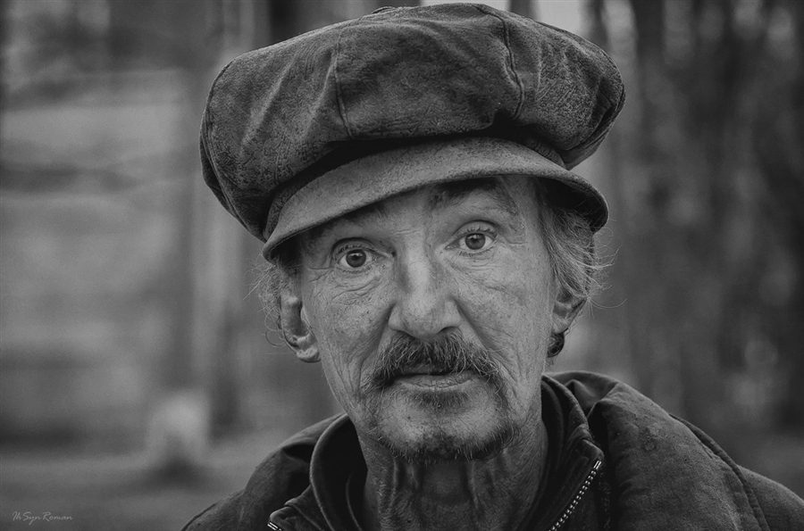 Бездомный бородатый бродяга с сигаретным знаком helpPREMIUM