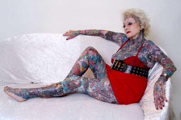 Женщины не отстают от мужчин в стремлении стать самым татуированным человеком в мире. В графстве Хертфордшир проживала Изобель Варлей, которая в памяти любителей тату стала своеобразной “легендой”. Первую наколку Изобель сделала в 49 лет и потом не смогла остановиться. В итоге в пенсионном возрасте на ее теле насчитывалось 200 татуировок, а покрывали они 93% всей поверхности. Несмотря на свое увлечение наколками, Изобель призывала людей не спешить ложиться под иглу мастера, а хорошо подумать. Умерла самая татуированная леди в 77 лет.