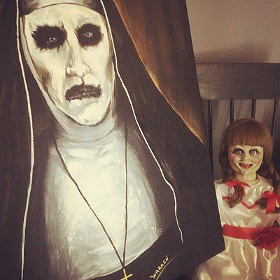 Идея персонажа монахини пришла в голову Джеймсу Вану после того, как он услышал о призрачной сущности, которая предположительно преследовала исследователя паранормальных явлений Лоррейн Уоррен (вставка).