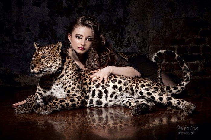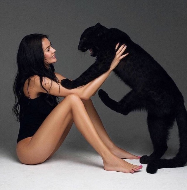 Девушка с черной пантеройДевушки