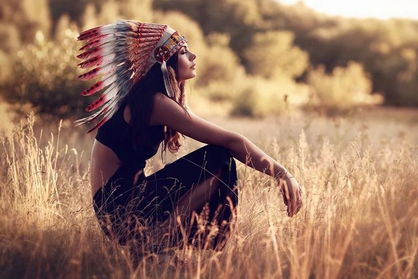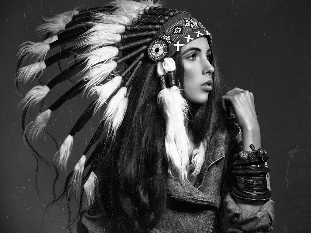 Портрет красивой индейской женщины в этническом костюме с традиционным макияжем. студийный портрет на темном фонеPREMIUM