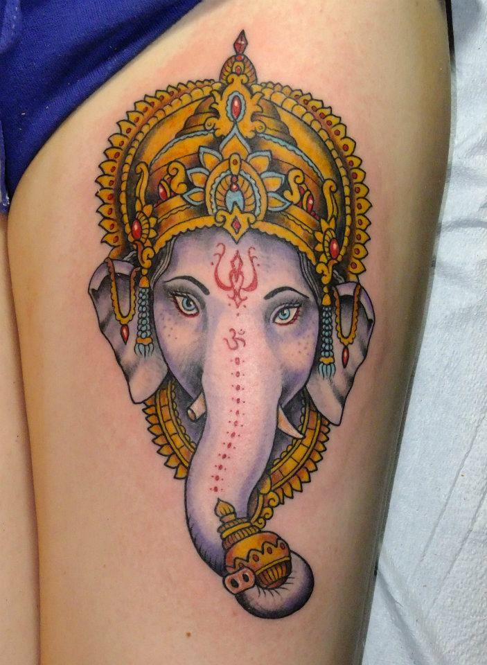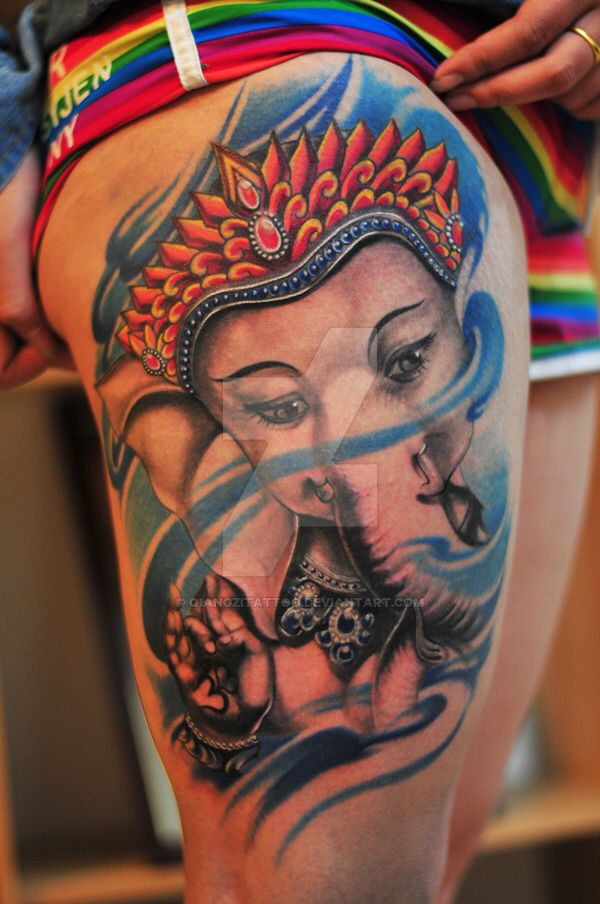 5 Татуировки Ганеши на голени - 5.6 Татуировки Ганеши на бедре
