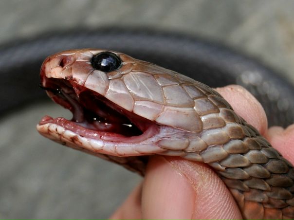 Это обычно темно-коричневые, черные или темно-серые змеи, которые очень быстро атакуют и движутся. Яд моноклейной кобры гораздо более смертоносен, чем яд королевской кобры, поэтому требуется лишь очень небольшое количество, чтобы вызвать смерть человека. Я встретил женщину, которая недавно потеряла мужа из-за укуса пальца ноги мужчины, когда тот вылез из-под уличного холодильника, когда он открывал его, чтобы взять пива.Яд одновременно некротоксичен и нейротоксичен. Сначала человек, которого укусили, потерял ногу из-за некроза. Потом по колено. Затем вся его нога, и врач заверил его и его семью – теперь с ним все будет в порядке. Он умер несколько дней спустя. Односпальные кобры кусаются быстрее королевских кобр и исключительно опасны. Не связывайся с этой змеей.