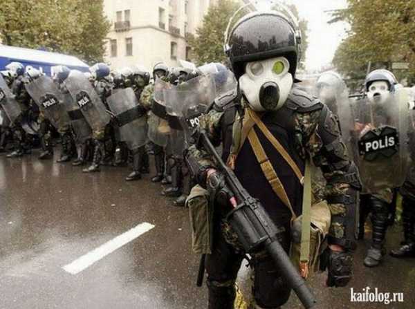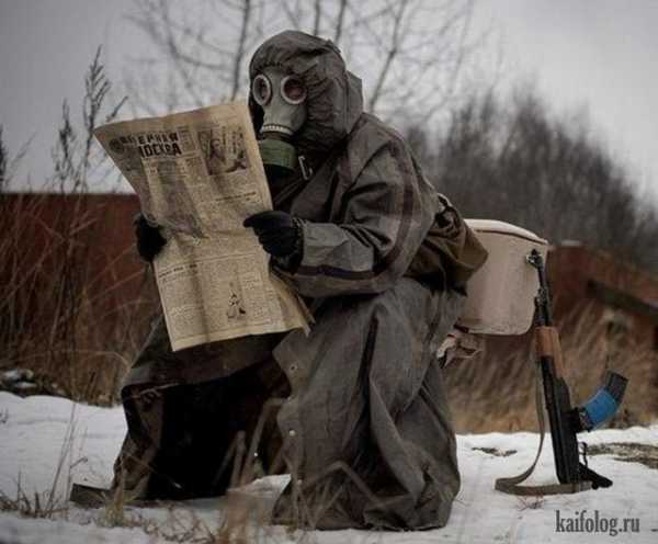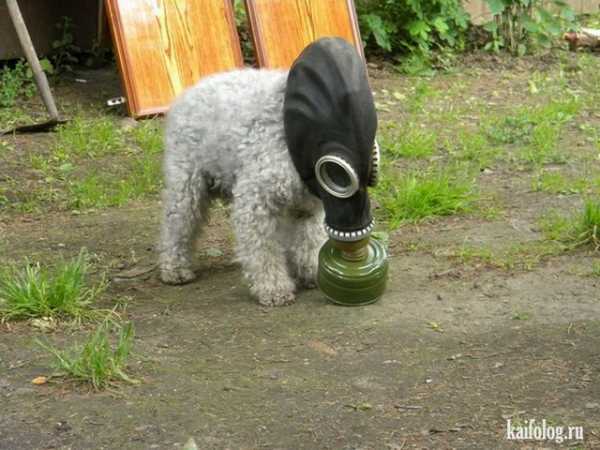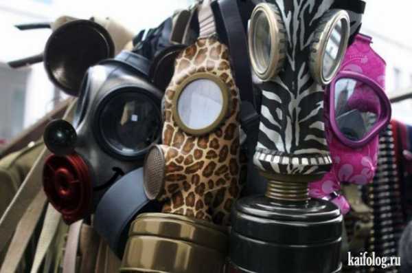 Завтра весь мир будет отмечать день рождения противогаза – 164 года. Это очень важное изобретение, которое используется намного чаще, чем мы можем предполагать (на производстве, например). Но так как kaifolog.ru – сайт приколов и юмора, я собрала только смешные фото про противогазы. Кстати, завтра еще будет день России, так что встречайте этот праздник в противогазе. 🙂