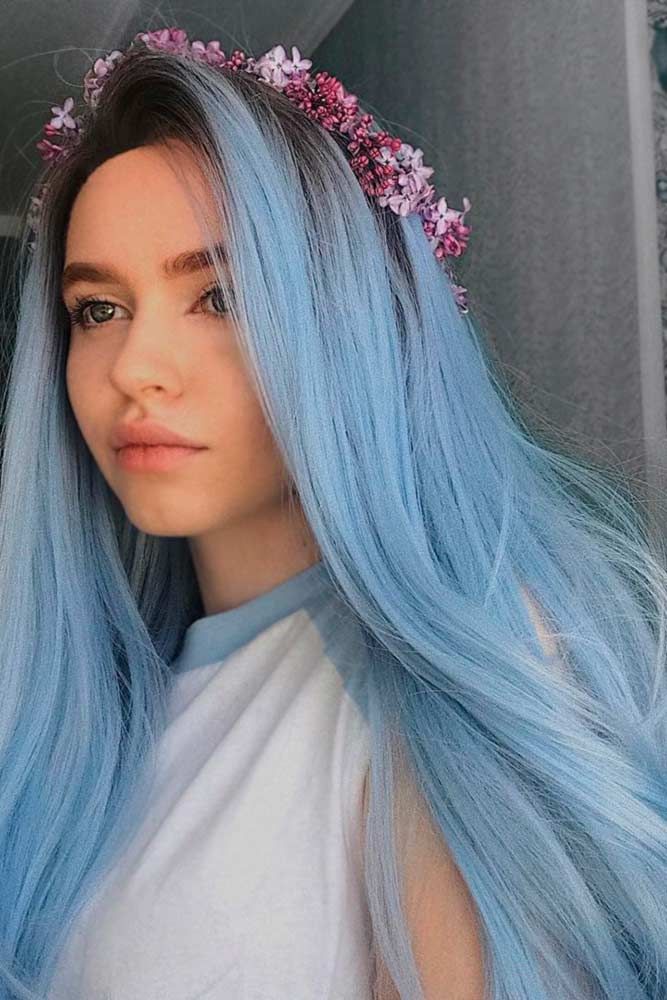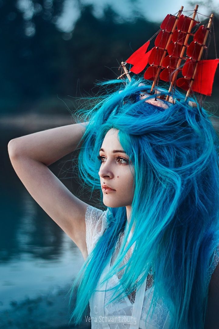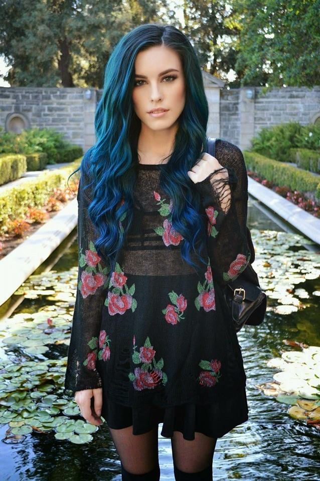 Юная девушка-подросток с синими волосами, фото и фотографииЮная девушка-подросток, с фото и изображениями