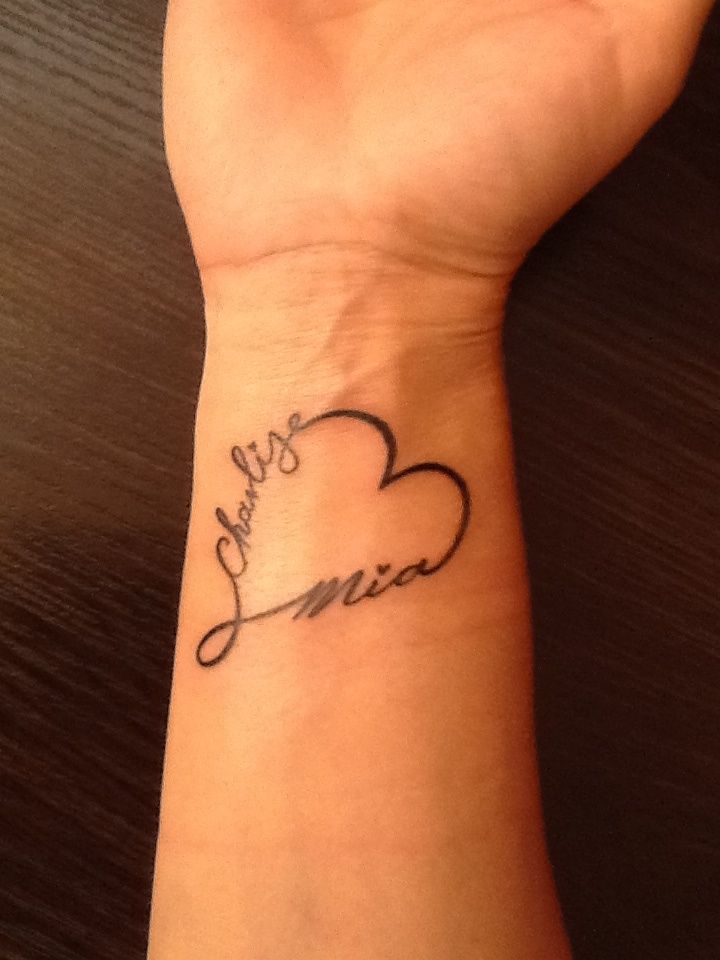 Такие татуировки рекомендованы для родителей, которые хотят, чтобы их дети были близко к сердцу. Вы также можете написать имя, а ниже сделать подпись (автограф) ребенка. Если у вас есть малыш на руках, но можно научить его писать имена, и чтобы именно он написал свое имя своим почерком на вашем теле, а тату мастер обвел его и стилизовал.