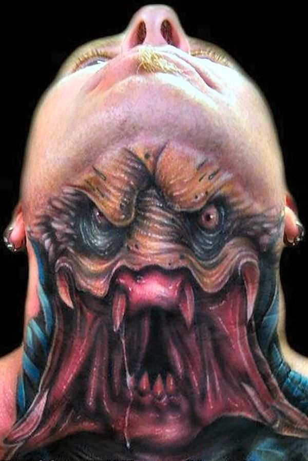 5. И еще один аналог, но на этот раз более мастерски/натуралистично выполненный. Навевает стойкие мысли о «Побудь в моей шкуре», хотя идея татуировки в отношении позитивности замысла противоположна фильму.