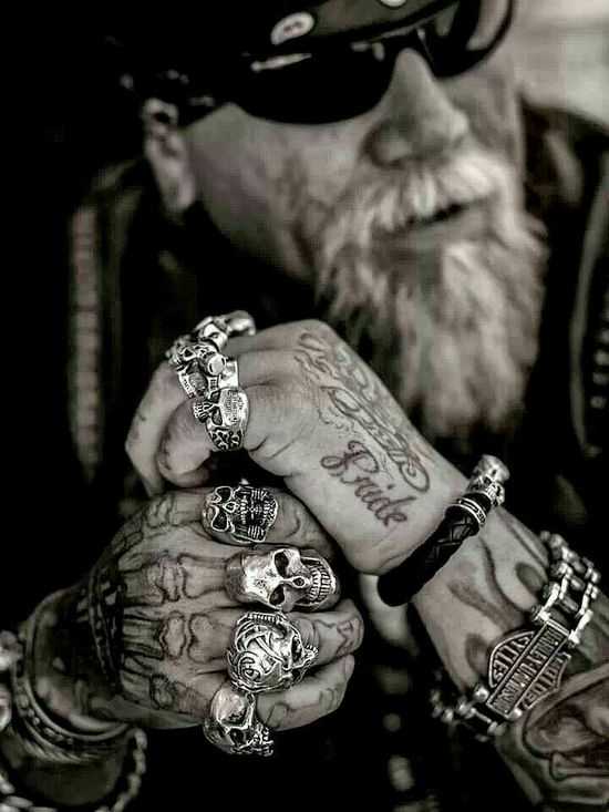 - Логотип или лозунг байкеровского клуба, к которому принадлежит владелец тату, что символизирует верность своему братству;