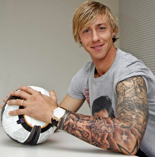 Еще один любитель минимализма в рисунках на теле известен также тем, что всю свою профессиональную карьеру играл в единственном клубе “Рома”. За свою жесткую игру был прозван “Гладиатором”. Именно этого античного персонажа можно увидеть на правом плече игрока.
