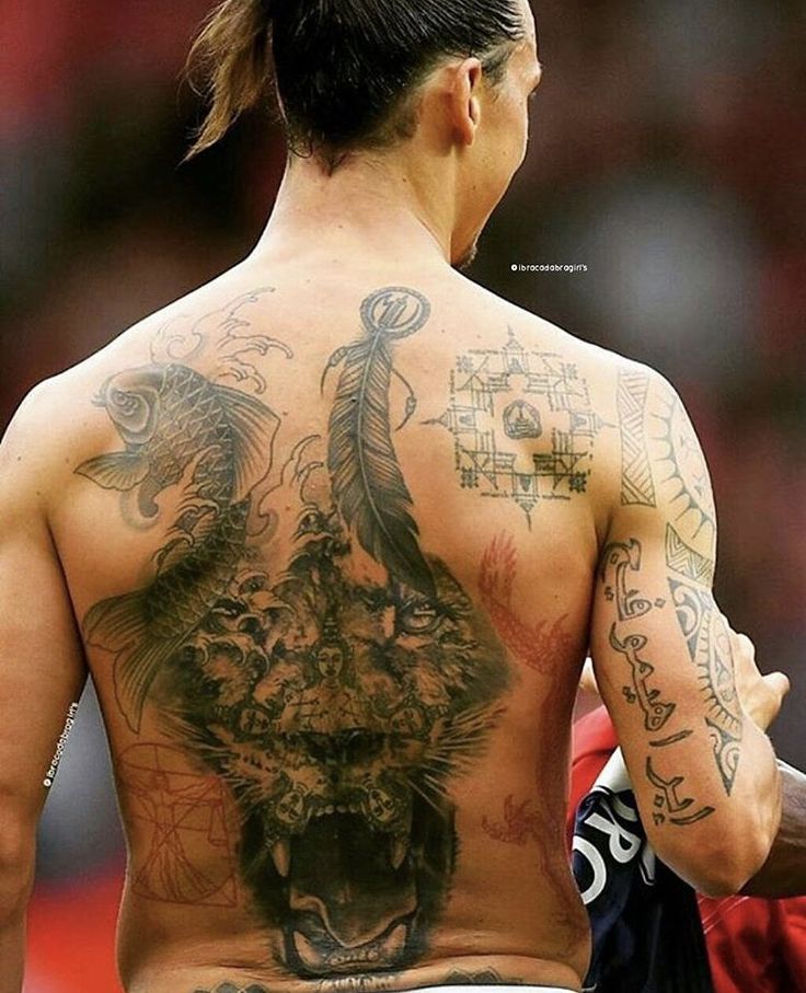 Когда я реву, он ревет. До этого впечатляющего Льва у Златана ранее были татуировки с серой рыбой кои (которая символизировала преодоление препятствий), орлиным пером (смелость, упорство и сила), Витрувианским человеком Да Винчи и пятью индуистскими дэвами (для физической защиты).
