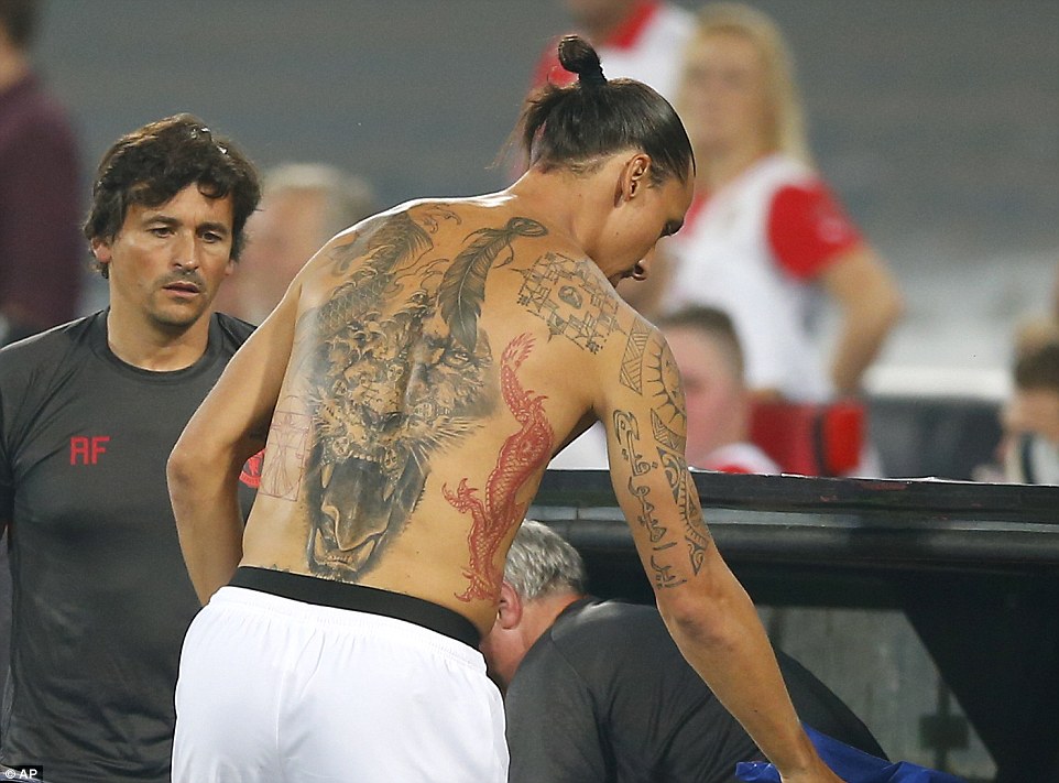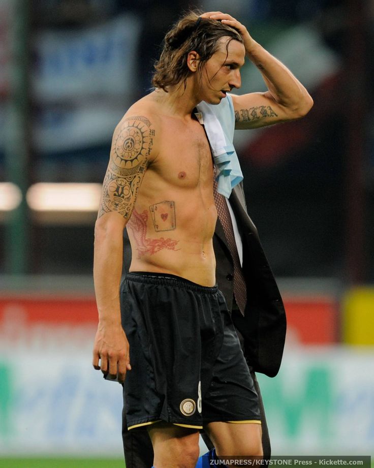 Высокая фигура Златана Ибрагимовича украшена многочисленными татуировками – или «Zlattoos», как, вероятно, назвал бы их самодовольный нападающий «Пари Сен-Жермен».