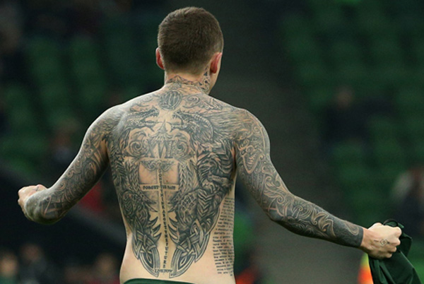 Посмотрим на 15 наиболее примечательных в росписи своего тела футболистов.