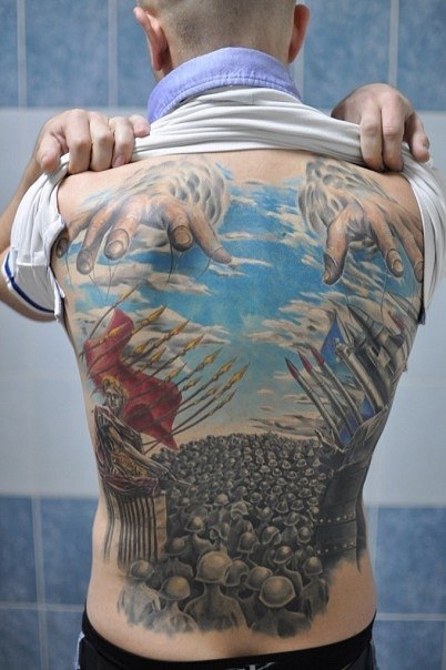 Татуировка Гуфа на спине: панорама Москвы