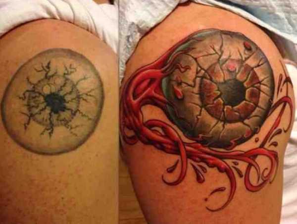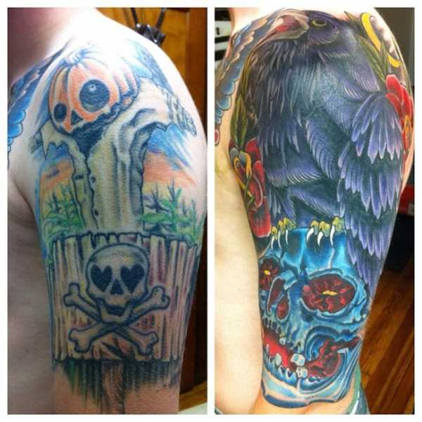 Те, кто говорят, что татуировка делается раз и на всю жизнь, скорее всего плохо знакомы с тату-культурой. От неудачных татуировок можно избавиться несколькими способами, один из которых — перекрытие, когда поверх старого рисунка наносят новый. Посмотрите на эти фотографии до и после и вы поймёте, что исправить можно всё что угодно.
