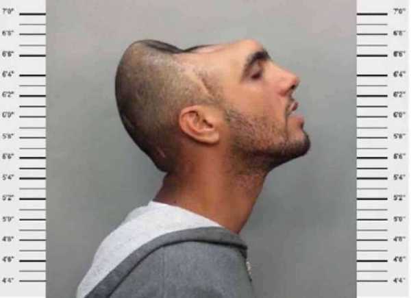 Этот юноша был арестован за попытку ограбления детского клуба, да еще во время проведения детского праздника! Избыток кожи на голове преступника как бы намекает на то, что разумом он мог бы быть и побогаче. Теперь же ему предстоит надолго застрять за решеткой.