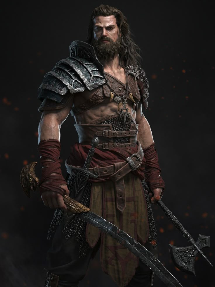 портрет в полный рост. фэнтезийный воин, античная боевая концепция.