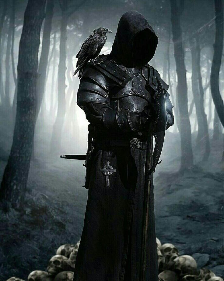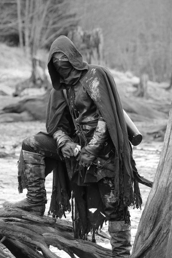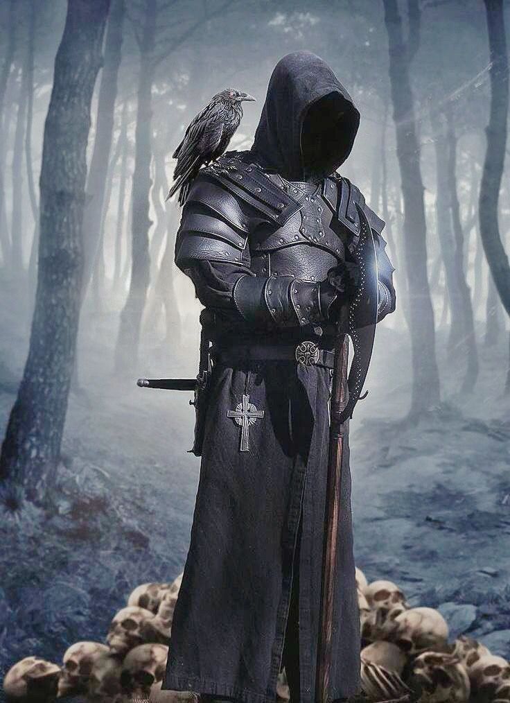 Портрет мужественного воина-скитальца в черном плаще. историческое фэнтези. Хэллоуин.