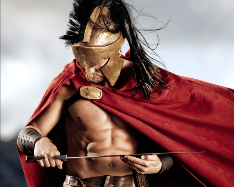 Спартанский заряд, спартанский воин в боевом платье атакует. фотореалистичная 3d модель сцены.
