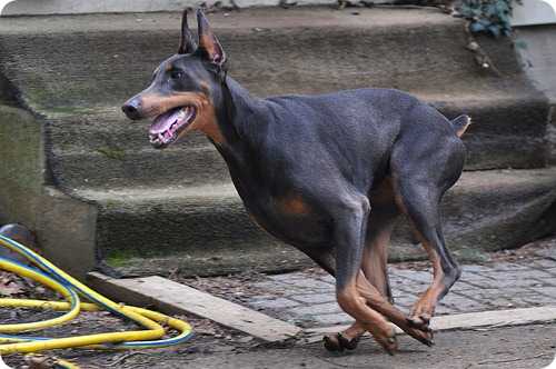Именно тот доберман, который любит длительные прогулки, вырастет веселым и жизнерадостным. Он будет с огромнейшим удовольствием сопровождать хозяина во время катания на велосипеде и оздоровительных пробежек.
