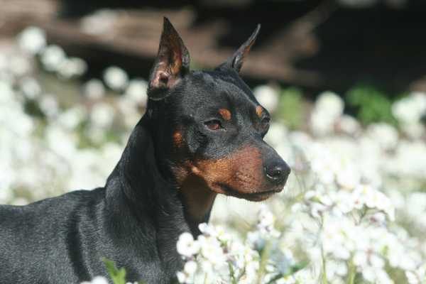 Не менее распространенная порода собак мини-доберман обладает внимательностью, смелостью и бесстрашием. Животные очень умны, а также имеют врожденное чутье.