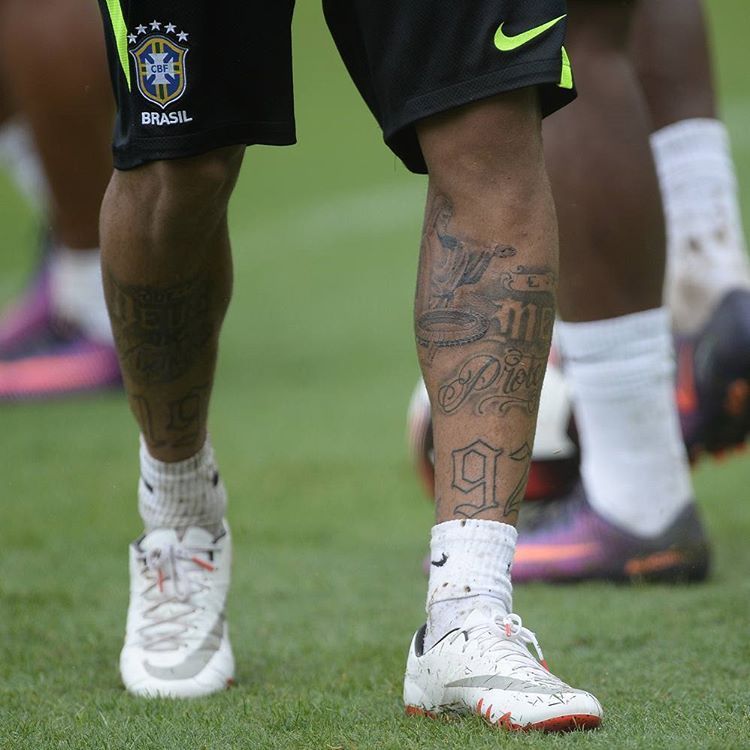Неймар пошел еще дальше и набил очень метафоричную картину. На его левой ноге изображен мальчик с мячом, смотрящий на бразильские фавелы и мечтающий о лучшей жизни. Сбылось!