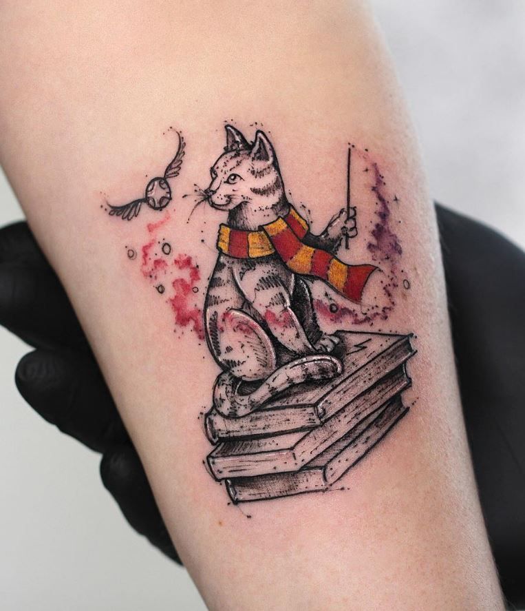 Эти татуировки действительно забавны, только для самых преданных фанатов. В шляпа сортировки хогвартса, который выбирает, в какой дом пойдет каждый ученик, также является частью некоторых хороших таутаджей. Цвет необходим, чтобы показать детали лица шляпы, а также некоторые другие штрихи. Метла для квиддича или волшебная палочка – две хорошие идеи.