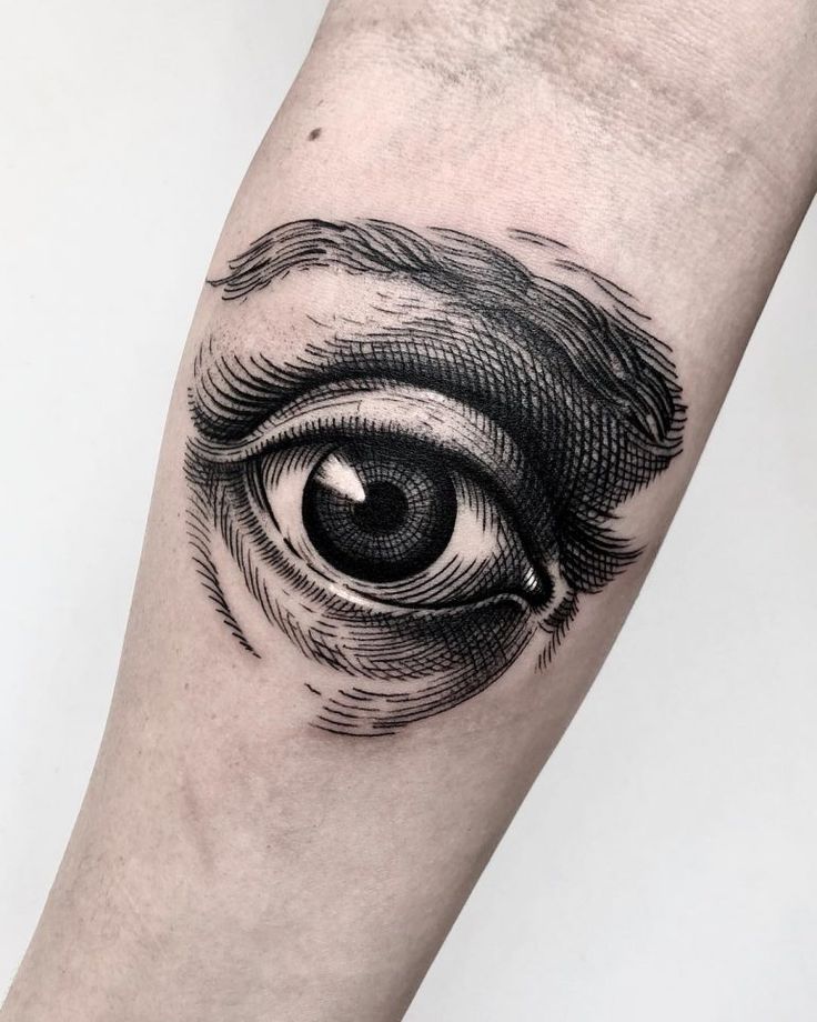 Татуировка на предплечье у девушки – глазТатуировка на предплечье у девушки – глаза
