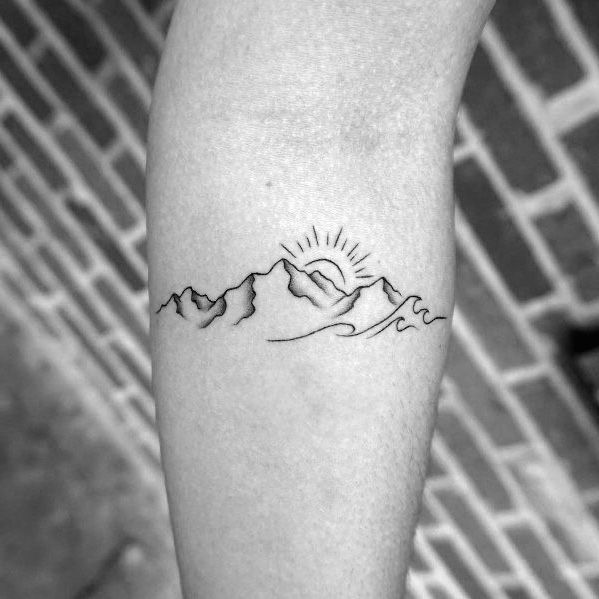 2. Дизайн Sun Peaking Mountain DesignТатуировка Sun Peaking Mountain View может быть отличным выбором для тех, кто любит закаты или восход солнца, нанесение ее на предплечье может быть лучшим местом.